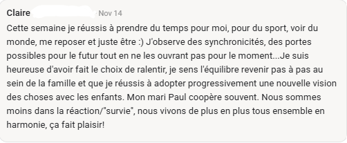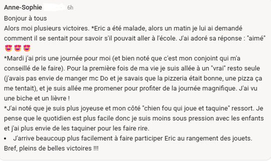 Puis les vieux réflexes reviennent. Les cris, les tensions, la culpabilité.